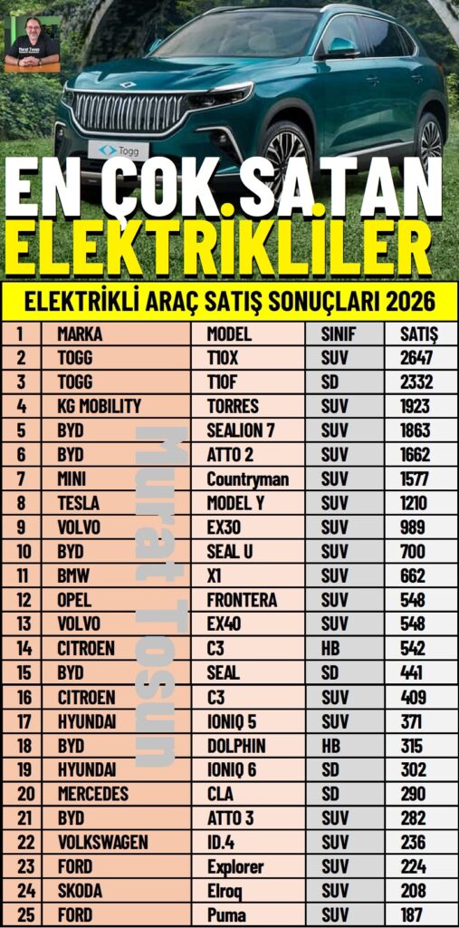 ELEKTRİKLİ OTOMOBİL SATIŞLARI COŞTU! Peki hangisi kaç tane satıyor? Favori elektrikli modeller hangileri? Elektrikli Otomobil Satış Sonuçları 2026.