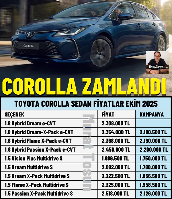 TOYOTA COROLLA ZAMLANDI! İşte Ekim 2025 Yerli Üretim Sedan modelin fiyatları. Toyota Corolla Sedan Ekim 2025.