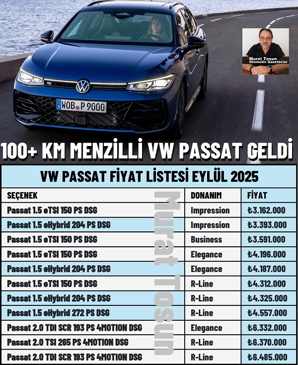VW PASSAT FİYAT LİSTESİ EYLÜL 2025 | ||
